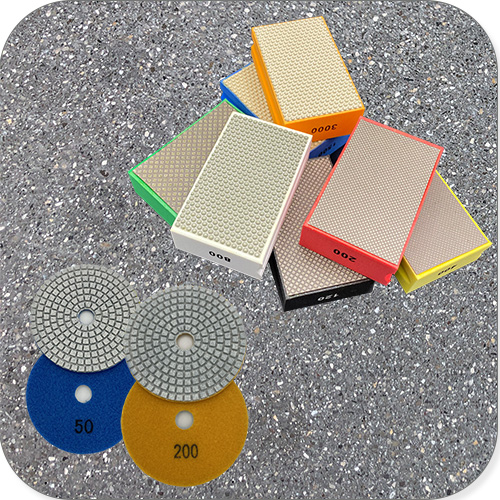 Beton schleifen mit verschiedenen Schleifpads und Körnungen